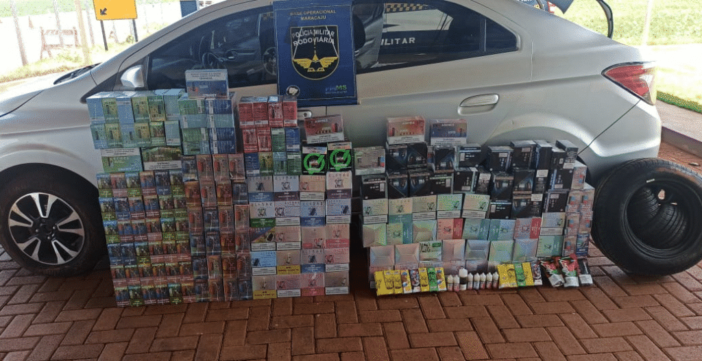 Ao notarem a presença policial, o condutor do veículo fez uma conversão repentina para tentar escapar e adentrou o perímetro urbano de Maracaju, abandonando o carro. Durante a investigação, os policiais encontraram diversas caixas de cigarros eletrônicos de marcas estrangeiras dentro do veículo, além de uma bola contendo aproximadamente cinco pneus e um equipamento Starlink.
