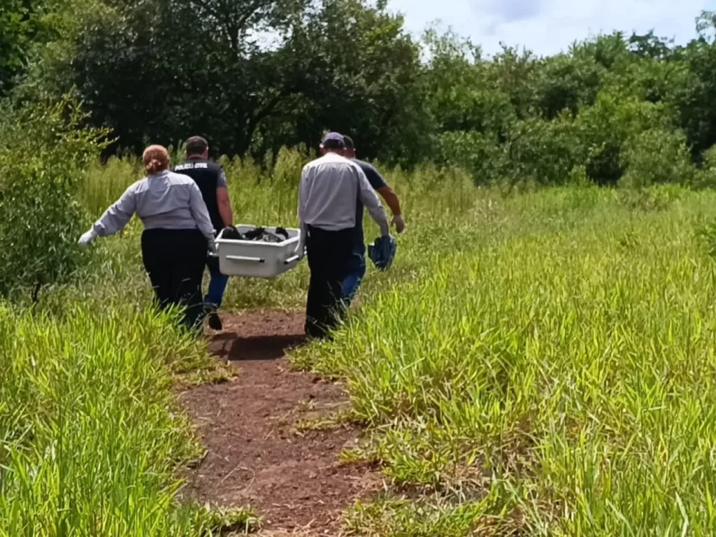Na manhã desta quarta-feira, 30 de dezembro, um corpo carbonizado foi localizado em uma área de mata no bairro Recanto do Bosque, em Dourados. A Polícia Civil e a perícia técnica foram acionadas para investigar as circunstâncias do ocorrido. No local, os peritos encontraram indícios de pneus, madeiras e outros materiais que parecem ter sido utilizados para iniciar o fogo.